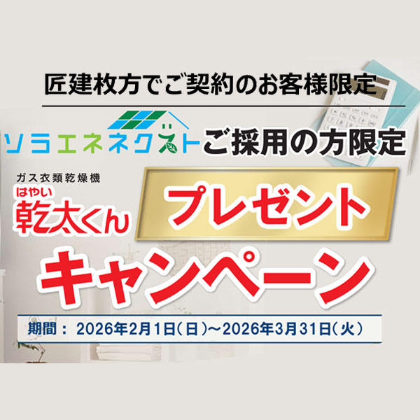 期間中に、大阪ガスの「ソラエネネクスト」を採用いただくと、ガス衣類乾燥機「乾太くん」をプレゼント!