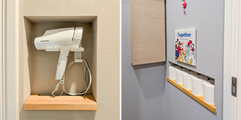 (山下)ドライヤーやトイレットペーパーの収納場所もそれぞれお作りしましたが、使い心地はいかがですか?