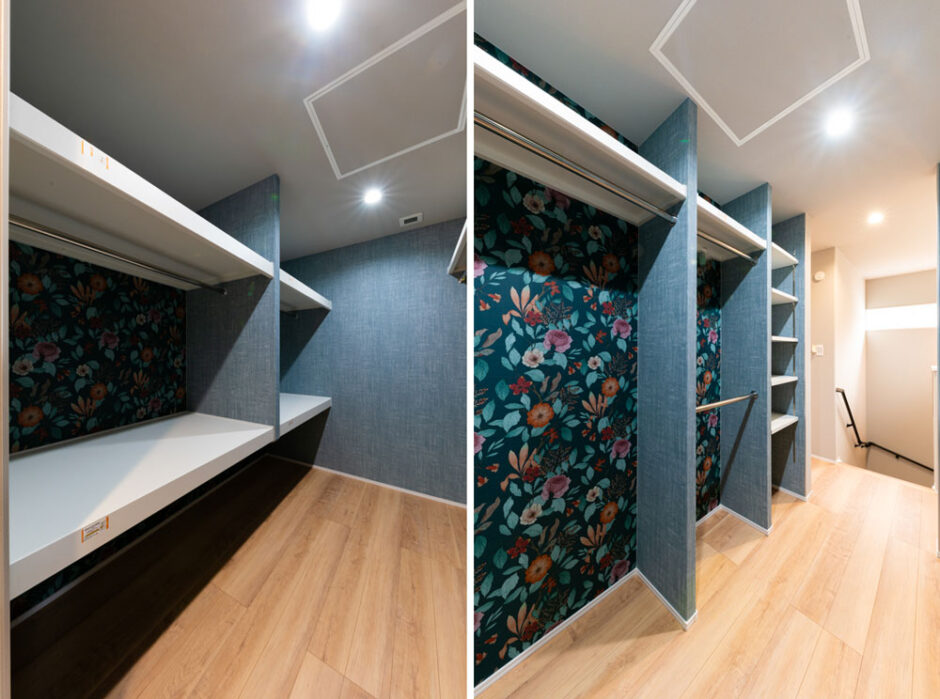 家族みんなで使いやすいよう通路幅や収納量にゆとりをもたせ、日常使いの衣類から季節物、かさばる荷物まで一か所で管理しやすい構成としています。
