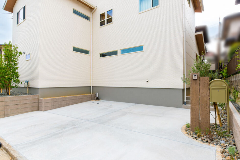 すっきりとした見た目と使いやすさを両立させた駐車スペースと、